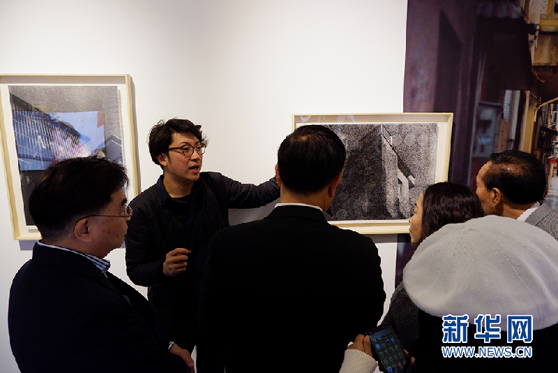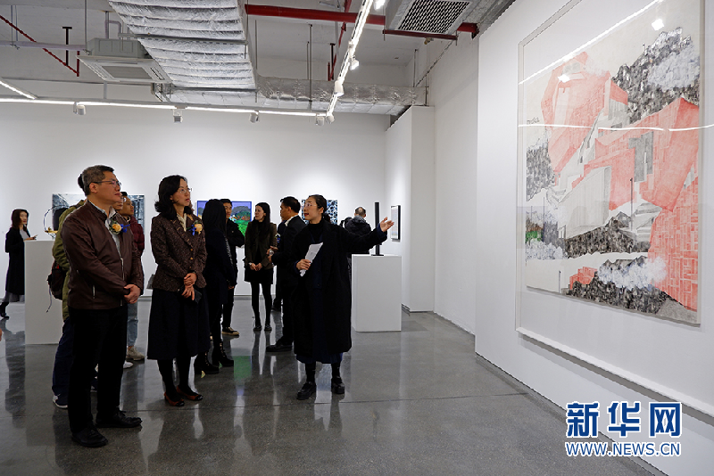 艺术导览员介绍交流展作品的创作亮点。新华网发