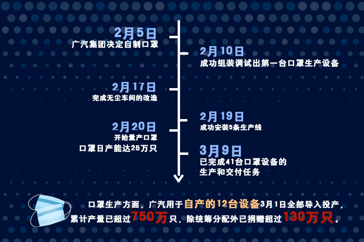 除捐物捐资外,不少车企开始跨界“制罩”,从“输血”转向“造血”。15天打造口罩生产线,口罩产量超过750万只……广汽集团以制造“硬实力”,跑出了防疫生命线的“车企速度”。