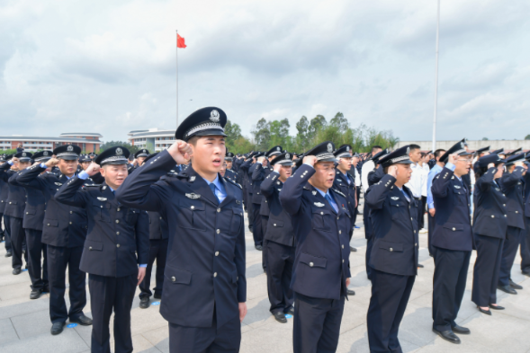 随后,现场民警集体重温入警誓词,“我志愿成为中华人民共和国人民警察,献身于崇高的人民公安事业……”崭新的警旗猎猎招展,铿锵的誓言响彻云霄。