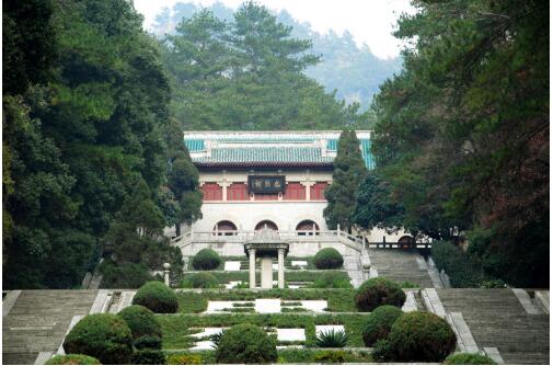 (南岳忠烈祠坐落于衡阳市南岳衡山香炉峰下方,共有19 座大型烈士陵墓,墓葬分布四周,庄严肃穆,祠内有殿宇、石雕炮弹等景观。南岳忠烈祠是我国建筑最早、规模最大的抗日战争纪念地之一,也是世界反法西斯战争的重要纪念地,首批入选国家级抗战纪念设施、遗址名录,是全国爱国主义教育基地。)