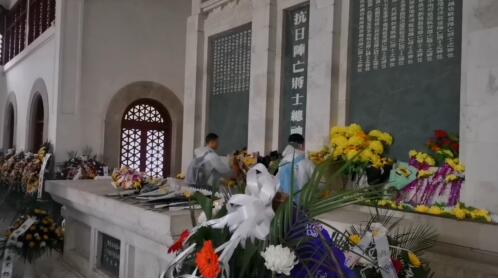 紧接着全体参祭人员向抗日阵亡将士总神位三鞠躬并默哀三分钟。全体参祭人员神情凝重,默然肃立,表达对抗战英烈的哀思和敬意。