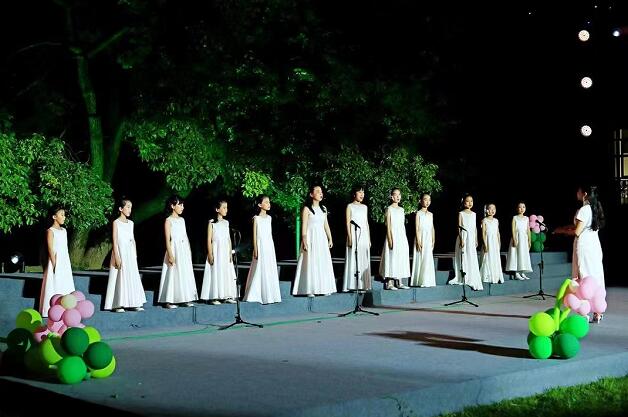 四月维夏,六月徂暑,夏天就这样夹杂着绿叶的清爽、栀子花的芬芳开始了它的旅程。“六一”国际儿童节来临之际,一场夏日的童声音乐会在“山上·文明里”成都新时代文明实践公园大榕树下拉开帷幕,以歌声庆祝节日,祝福祖国。伴随着夏日傍晚的花香鸟鸣,孩子们相聚在这片益趣相宜的沉浸式音乐会现场,用纯粹干净的歌声“描绘”成都的幸福美好生活,体味公园城市的幸福底色,喜迎党的二十大胜利召开。