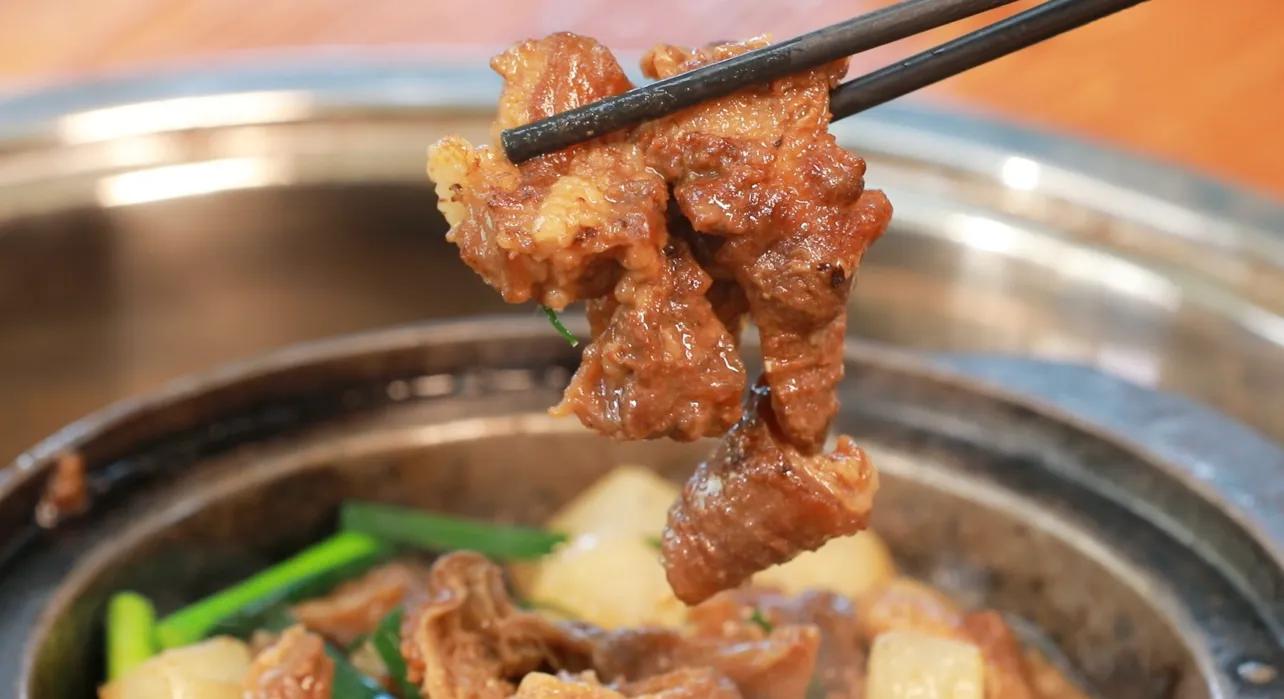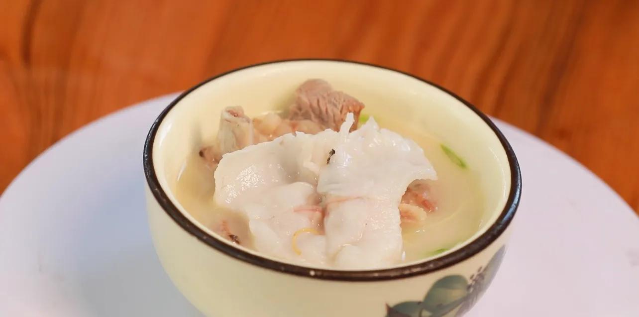 过桥鱼羊鲜,新鲜焖好的羊肉浓汤浇在大笋壳鱼片上,瞬间烫熟,羊肉醇厚与鱼片鲜嫩交融,暖入心扉。