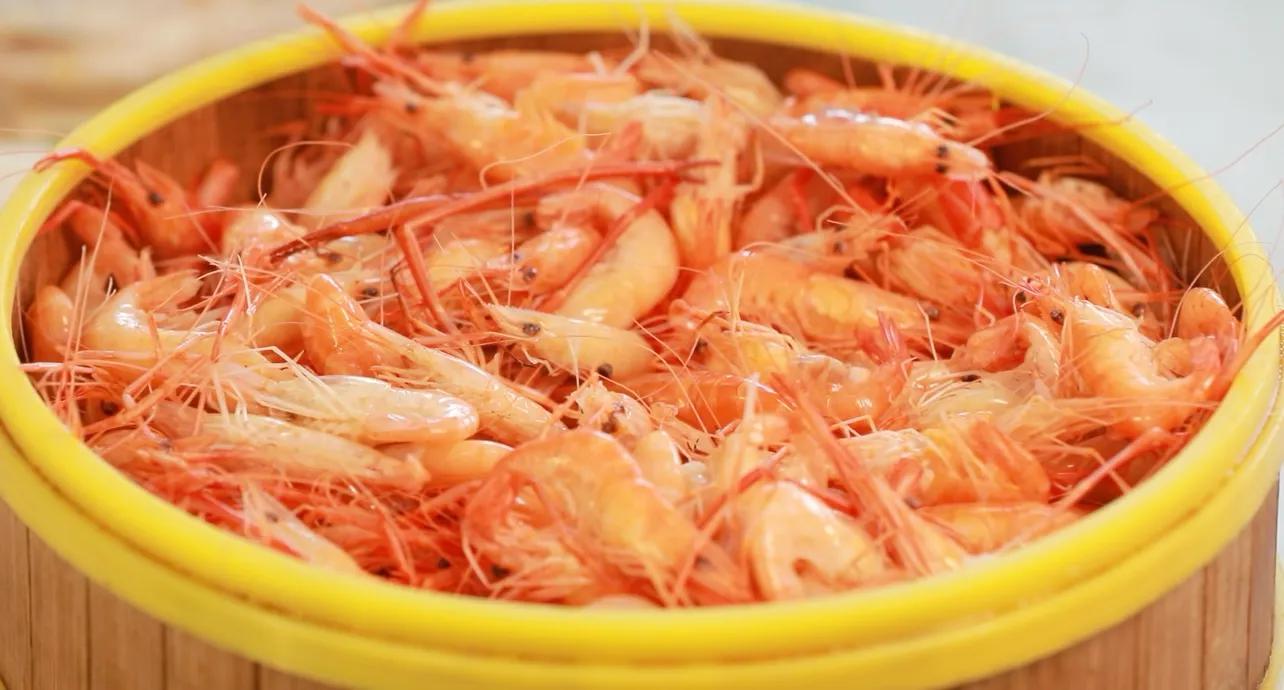 笼仔蒸河虾,当季北江河虾在竹笼中遇热变红,壳薄肉鲜,无需蘸料已鲜甜十足。