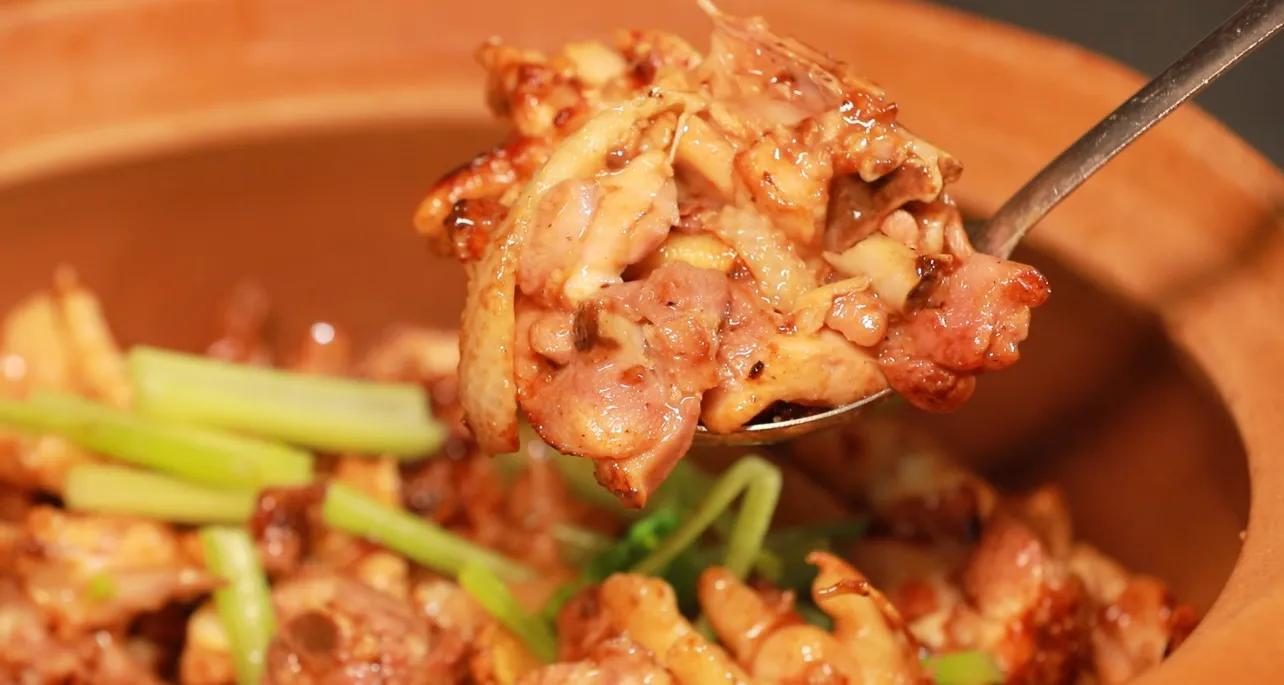 啫啫鸡煲,走地鸡与生姜蒜头在砂锅中碰撞,酱香扑鼻,鸡肉外香里嫩。