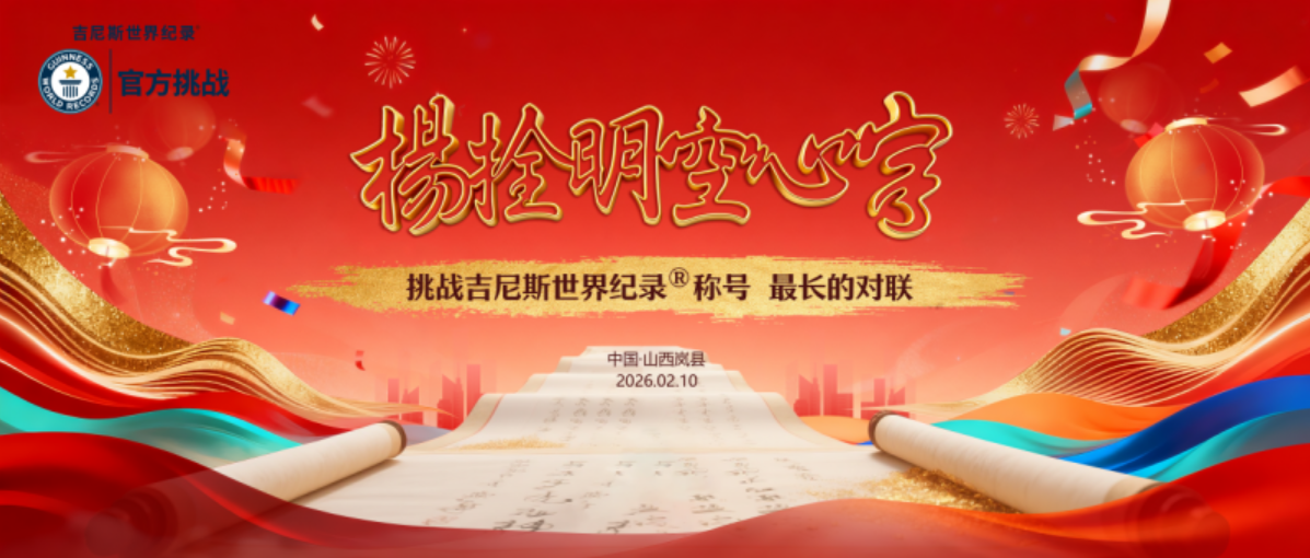本次活动由中华文化促进会、山西文化促进会、中央数字电视书画频道主办,中共岚县县委宣传部、山西楹联学会承办,中国书画家联谊会协办。现场不仅有打破世界纪录的“笔墨挑战”,更有精心设计的“沉浸式”文化体验。动静之间,既有春节伊始的热闹喧腾,也有笔墨纸砚的沉静深远;既连接着吉尼斯认证官的严谨目光,也呼应着黄河涛声与太行风骨在文明长卷中的绵延回响。